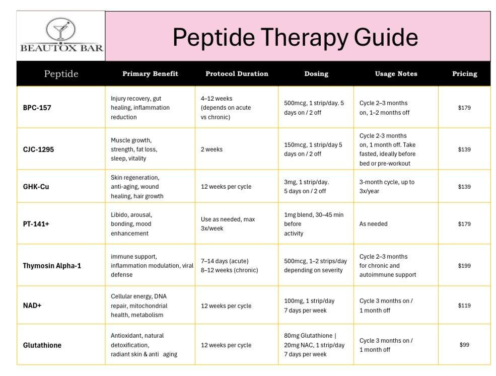 Are you ready to unlock a new level of vitality, beauty, and overall well-being—without injections or invasive procedures? We're thrilled to announce that Beautox Bar now offers 7 premium peptides designed to enhance your life naturally and effectively. These innovative, needle-free supplements are carefully selected to support everything from energy boosts and immune health to radiant skin and cognitive clarity. Whether you're aiming for better sleep, reduced inflammation, or enhanced recovery, our peptides provide real, science-backed results in a convenient, oral or topical form.